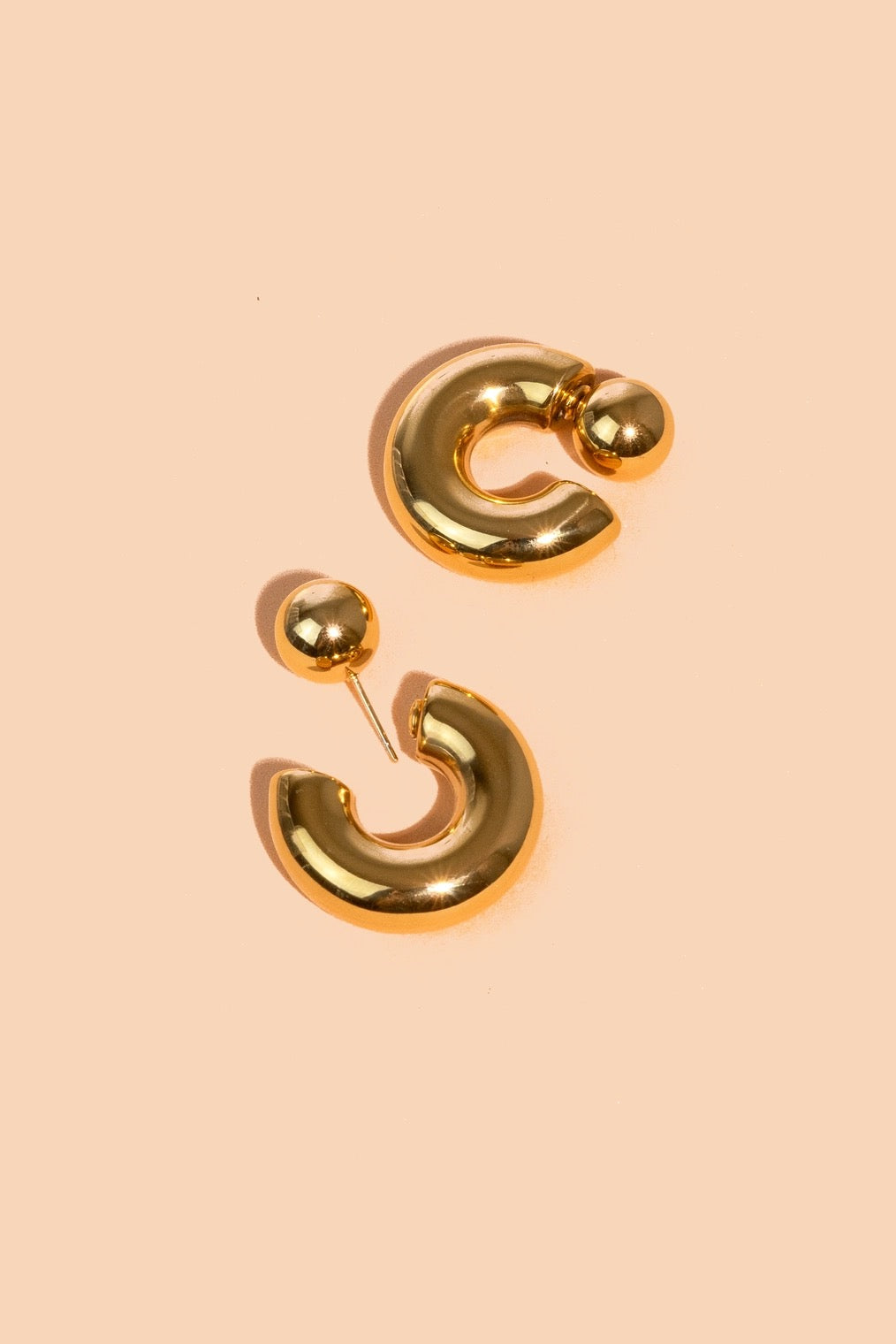 layered jacket hoops that can be worn with the ball stud in-front or in-back of the ear